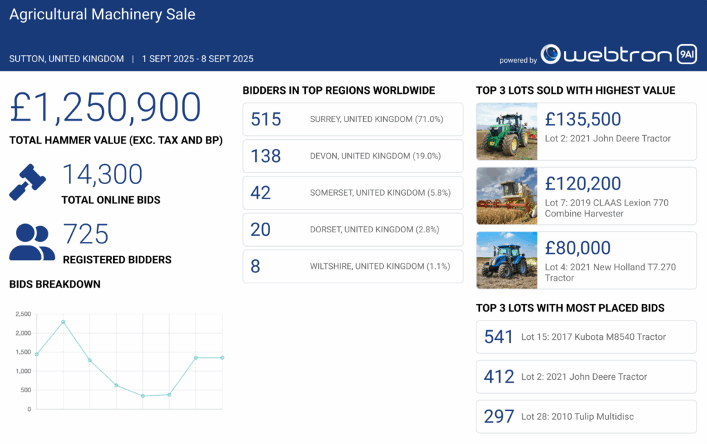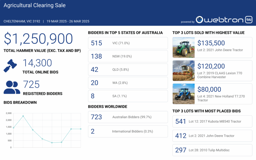- 24/7 AI Admin Chatbot – Webtron’s auction software designers have developed an AI-powered chatbot to assist with admin inquiries anytime, ensuring round-the-clock support for auctioneers.